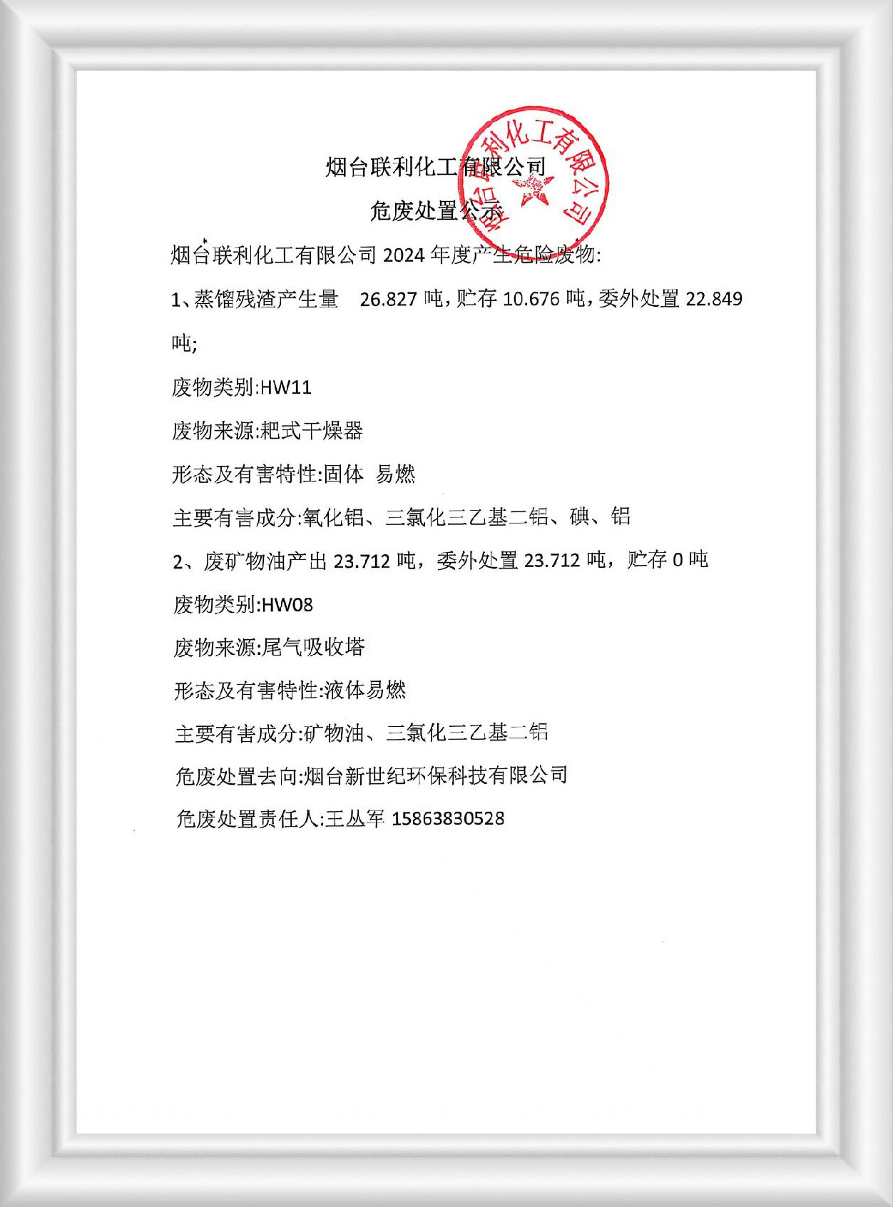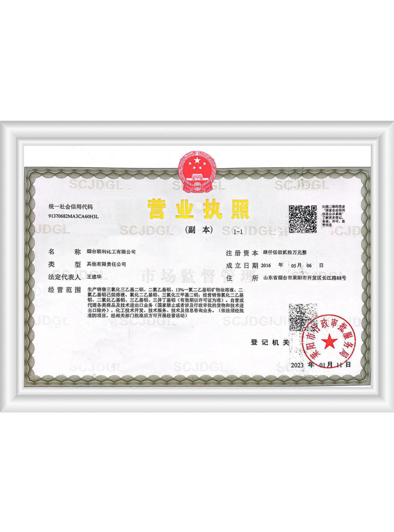 煙臺聯利化工有限公司成立于2016年5月,位于煙臺市萊陽經濟開發(fā)區長江路88號,公司前身為1988年北京燕山石化公司技術轉讓成立的煙臺燕德化工有限公司。